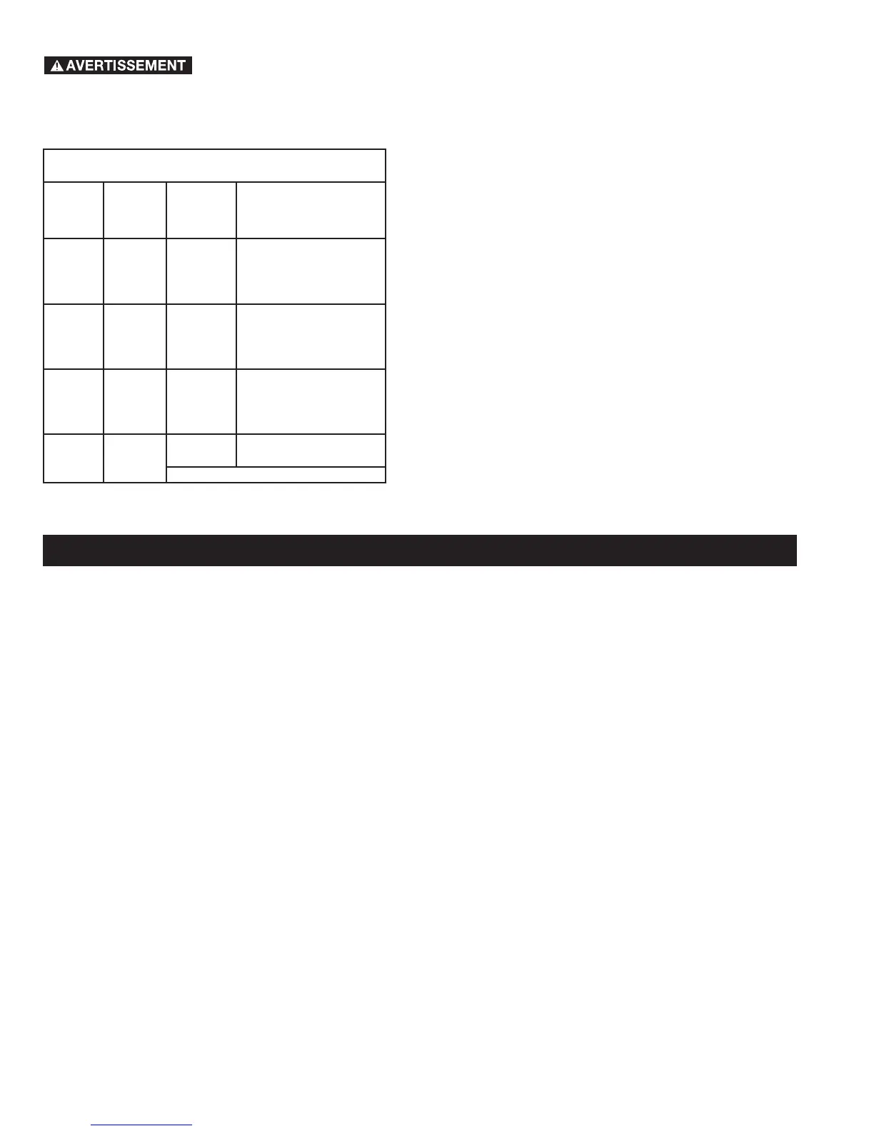 TAILLES RECOMMANDÉES POUR L'CUSAGE AVEC STATIONNAIRES ÉLECTRIQUES LES OUTILS