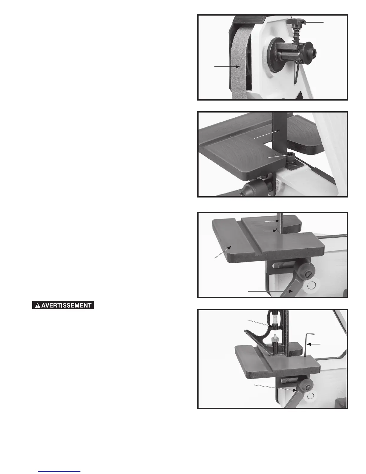 de la table à 90 degrés de la bande abrasive. Desserrer