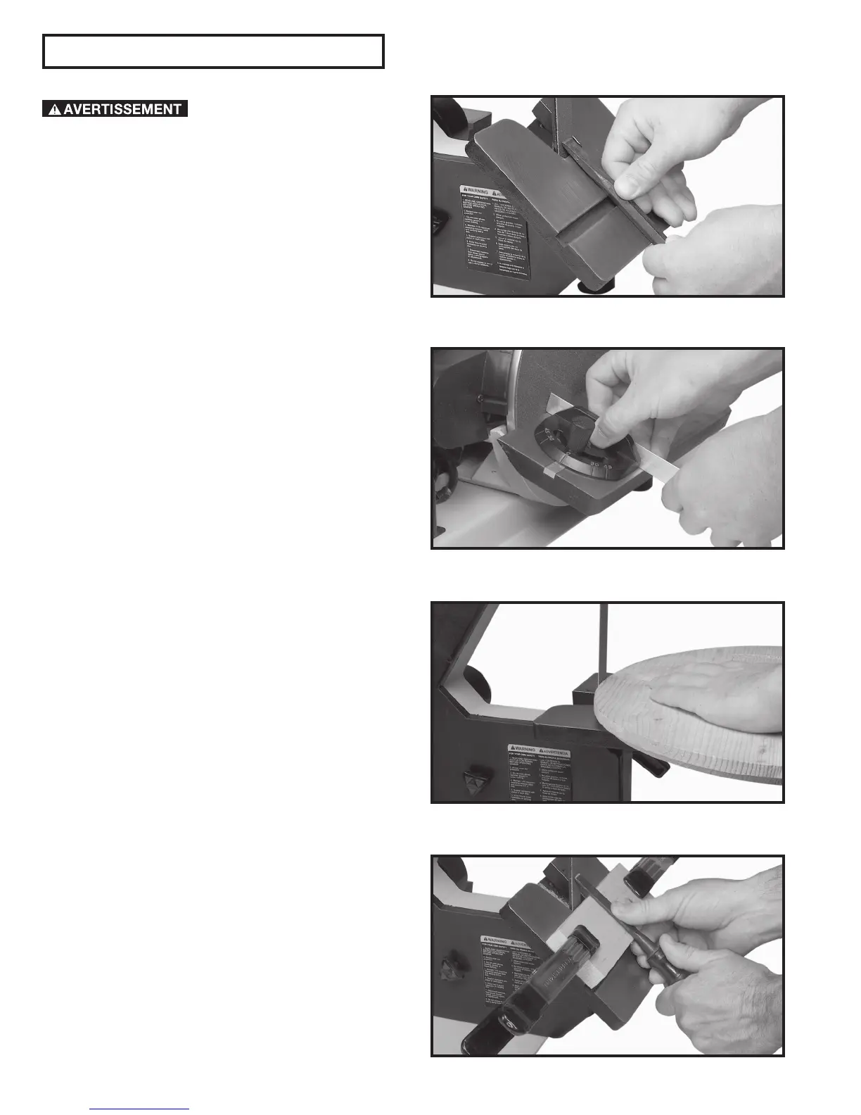 (vers le bas) du disque abrasif comme indiqué. Un