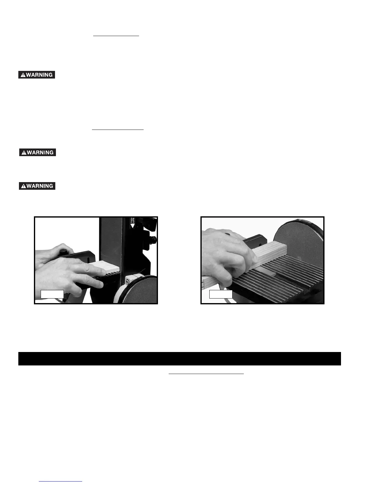 (upward) side of the sanding disc could cause the workpiece to fly up suddenly which could be