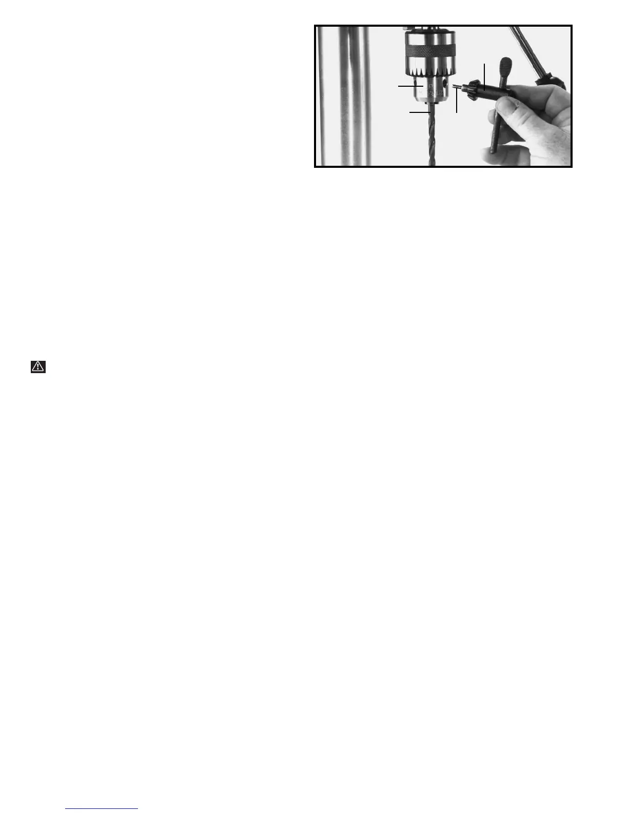 chuck before starting drill press. Your chuck key (C) is
