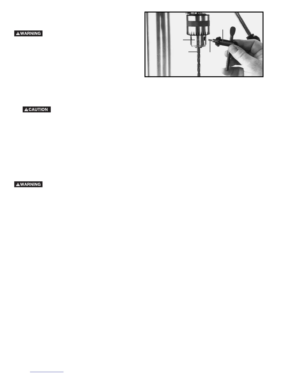 operator may be injured. The drill bit will be broken if the work strikes the column.