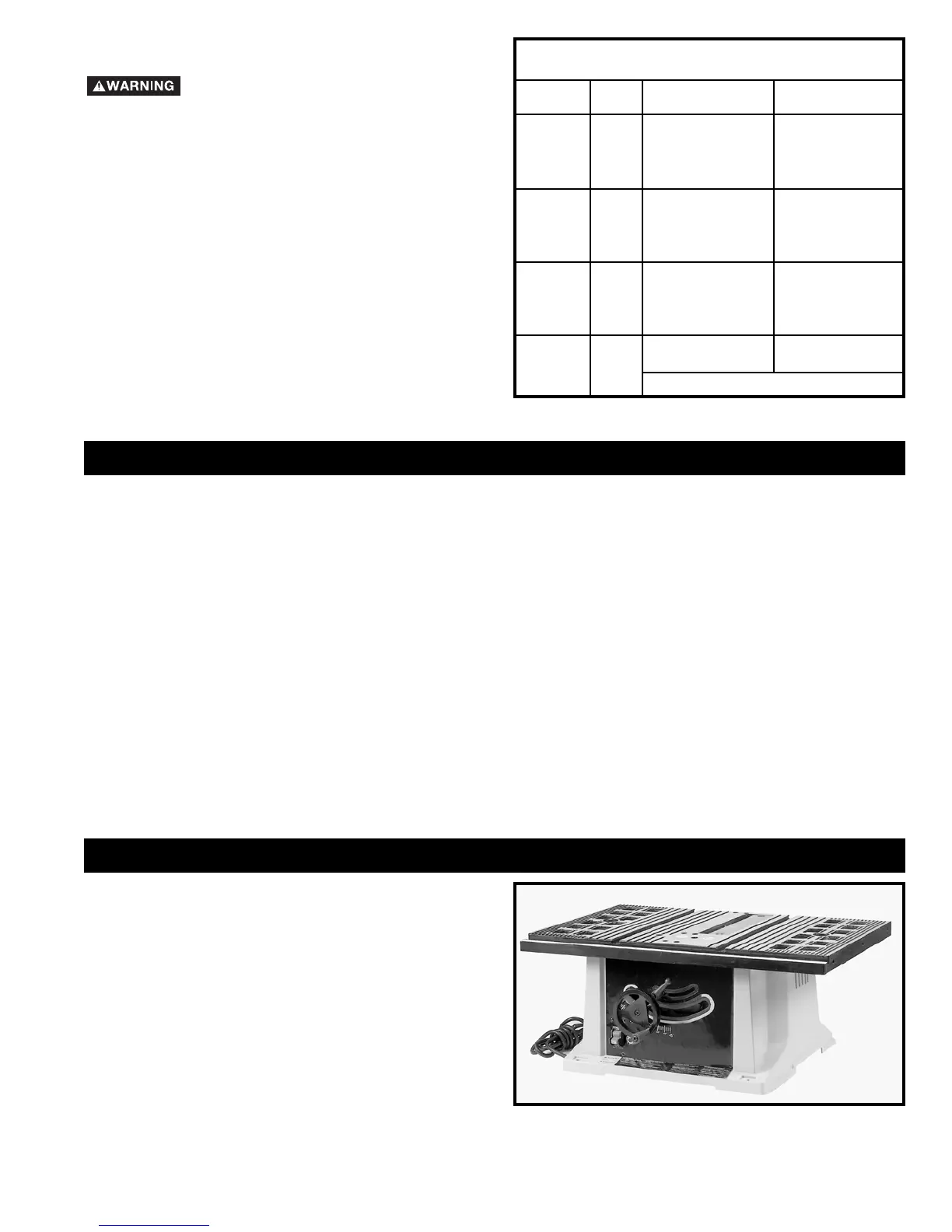 guard with splitter and anti-kickback fingers, a 10” carbide-tipped saw blade, table insert and blade wrenches. The