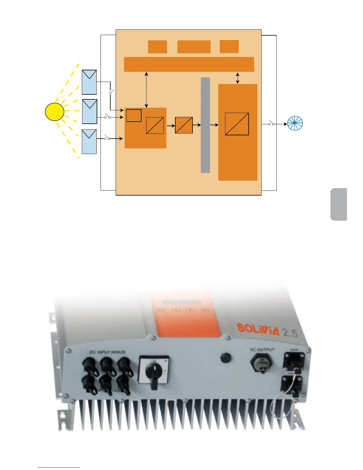 A ligação eléctrica neste inversor solar é realizada através de contactos de encaixe localizados na