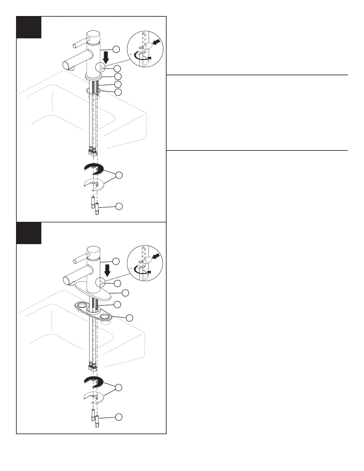 2. Position faucet (2) with single or three hole escutcheon (3) and baseplate or