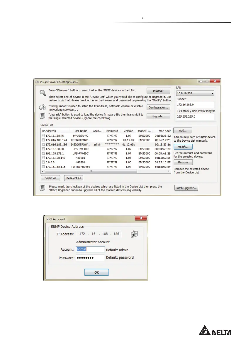 1. Click Discover. A list of SNMP devices is shown. Select a device from the
