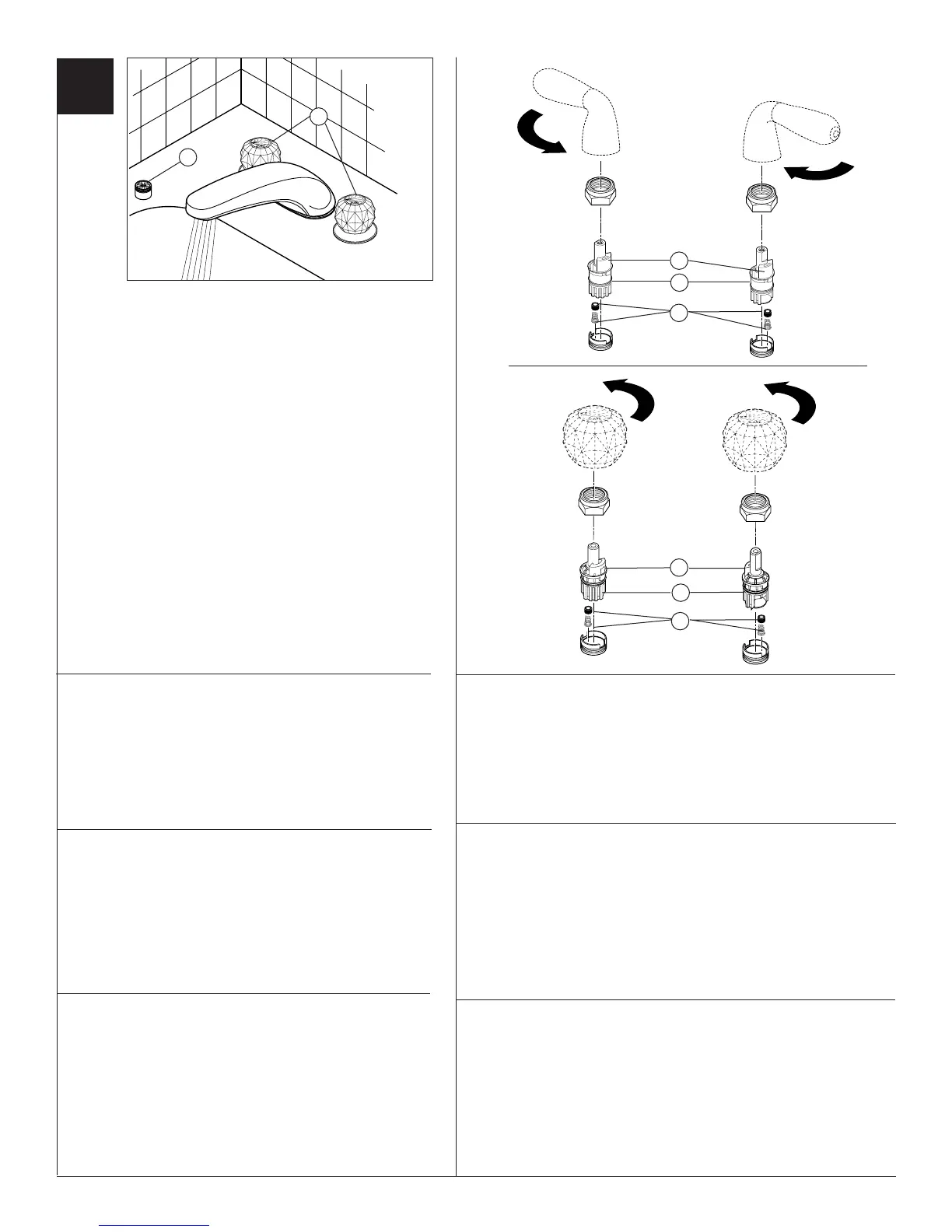 • For Knob and Cross, the stops (4) must point to the center of the faucet.