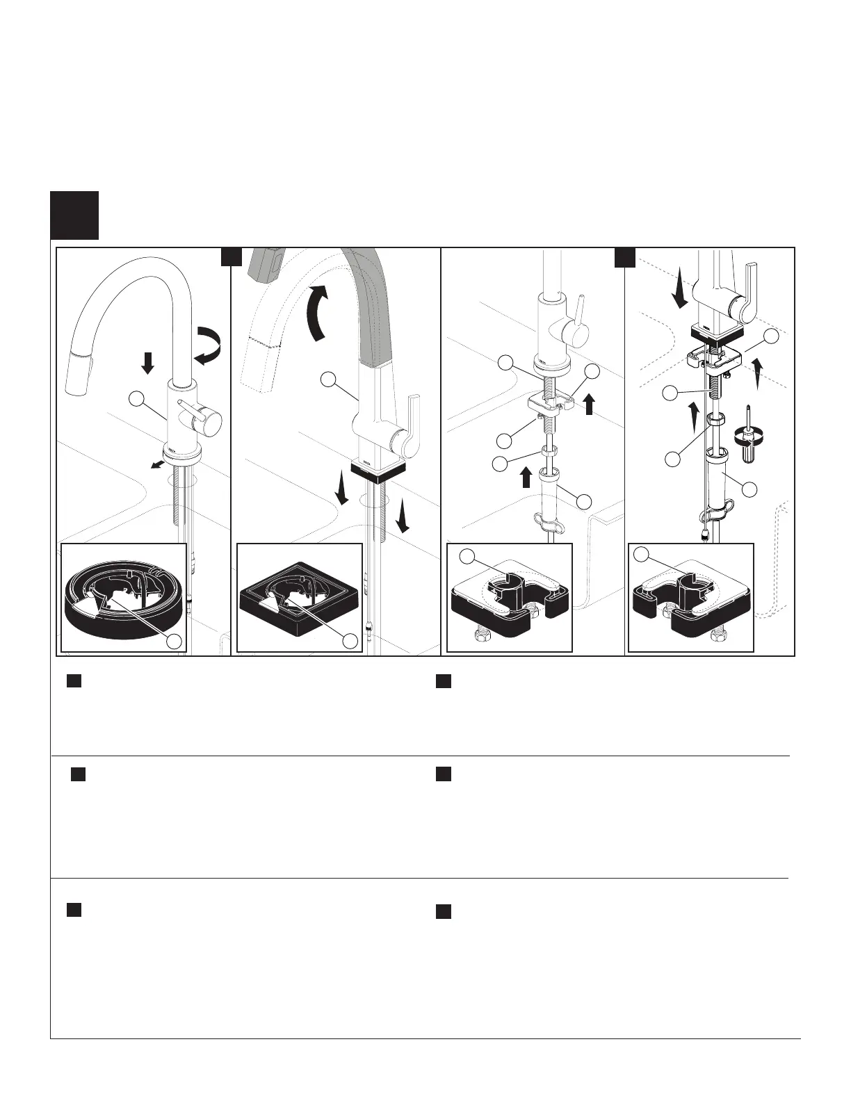 fregadero; y coloque el grifo (1) sobre el orificio de montaje. Asegúrese de
