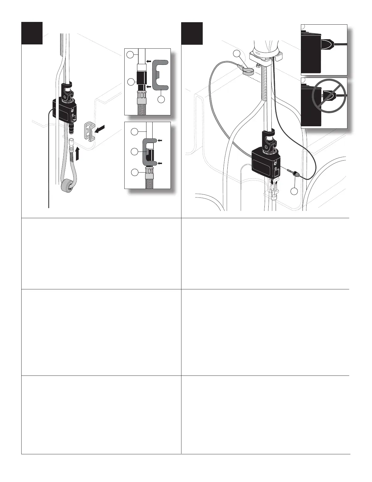 Sujete el gancho (20) sobre las mangueras como se muestra. Tire hacia abajo