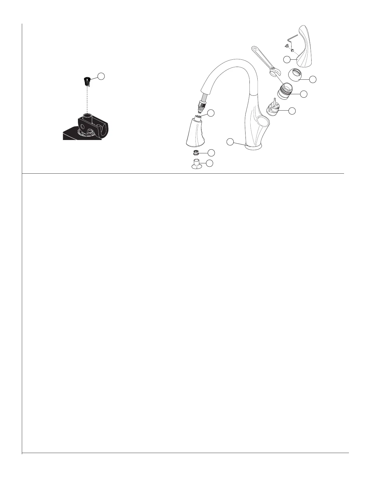If faucet leaks from spout outlet–SHUT OFF WATER SUPPLIES. Replace valve cartridge (7). When reinstalling parts, make sure bonnet nut (6) is tightened