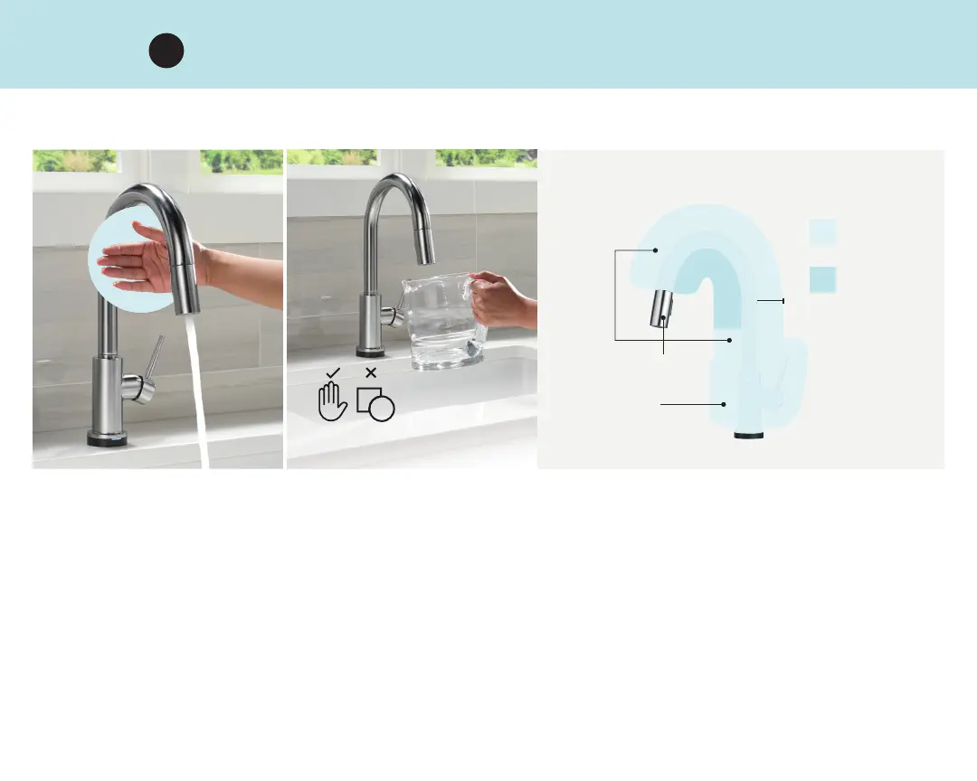 • Faucet senses humans, not objects, everywhere but the pull-down wand