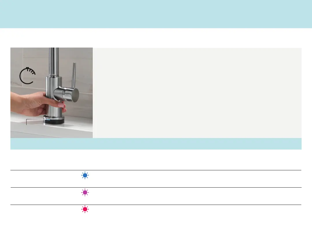. LED indicator will flash to signal what mode the faucet is in (See chart below)