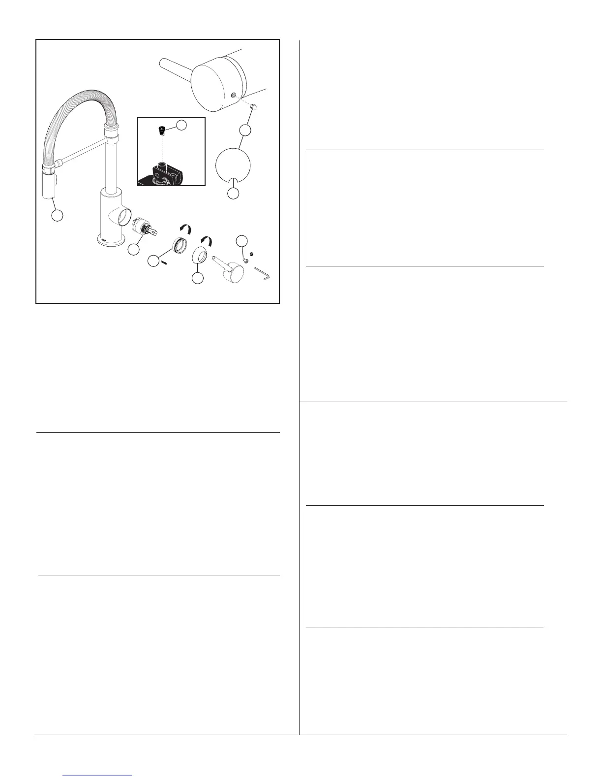 If faucet leaks from under handle or from spout outlet – Insert a small screwdriver into slot (2)