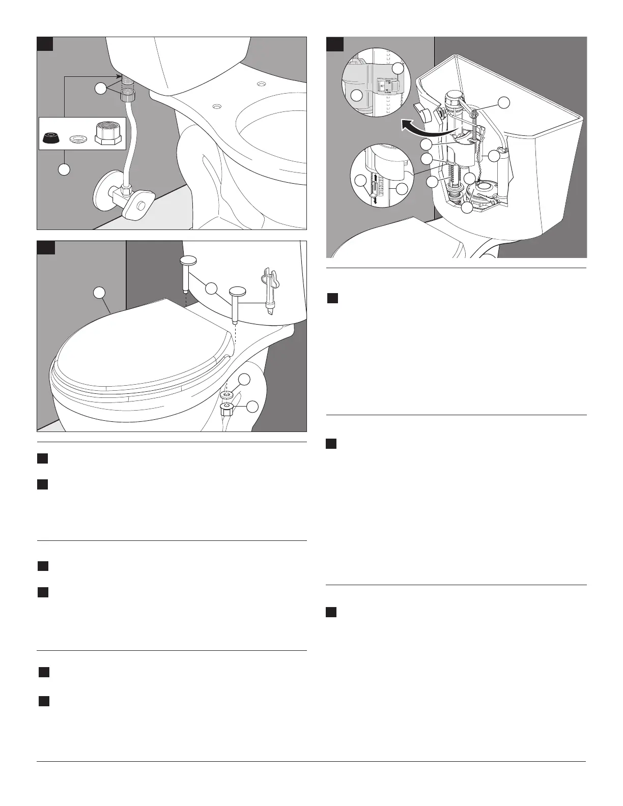 Placezlecouvercledusiège(1)surlacuvetteetintroduisezlesvis(2)comme