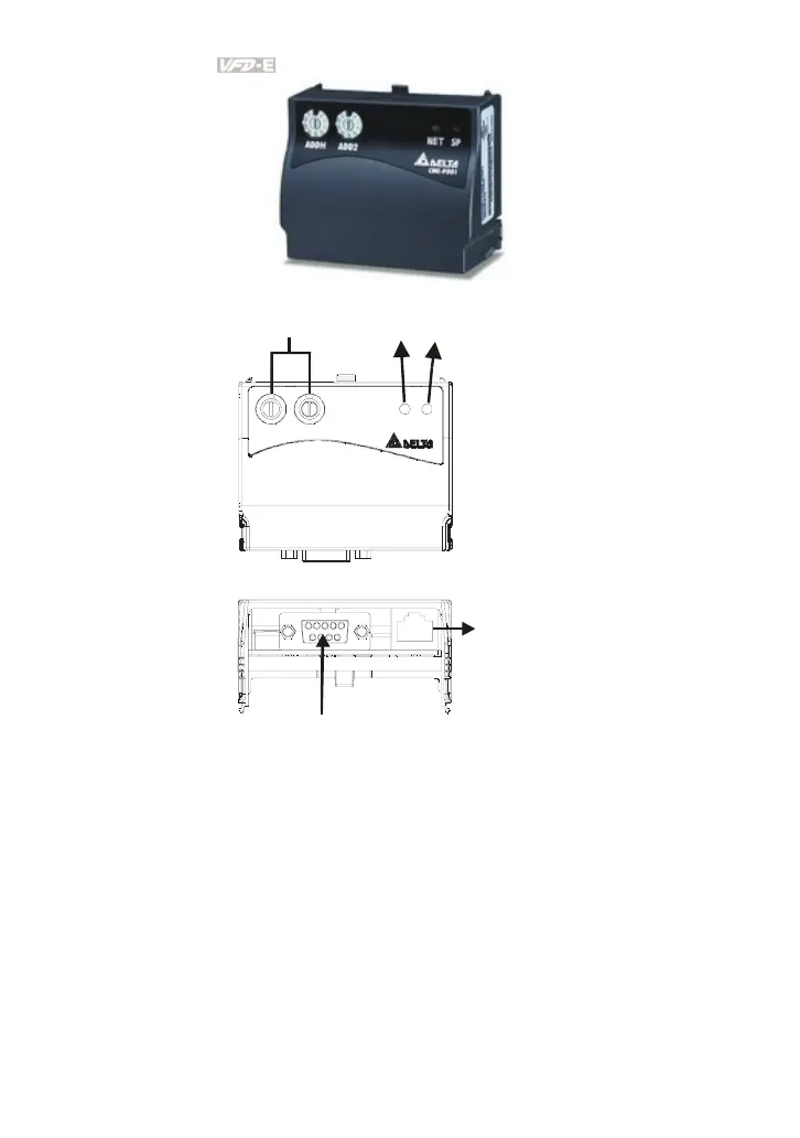 1. SP LED: Indicating the connection status between VFD-E and CME-PD01.