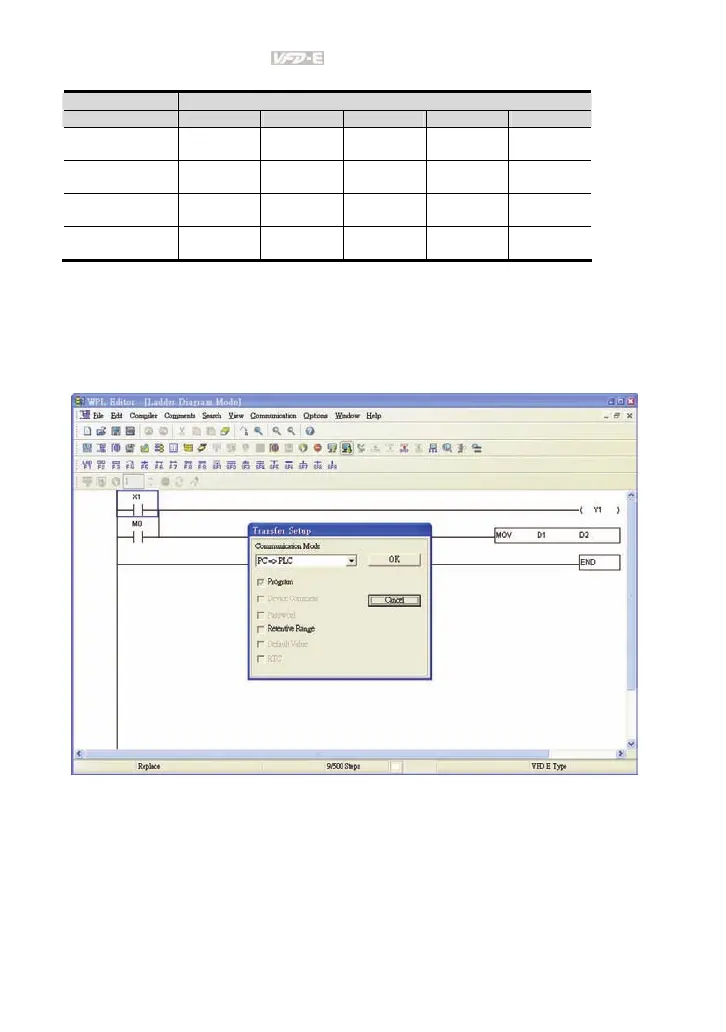 Download PLC program to AC drive: Refer to D.3 to D.7 for writing program and download