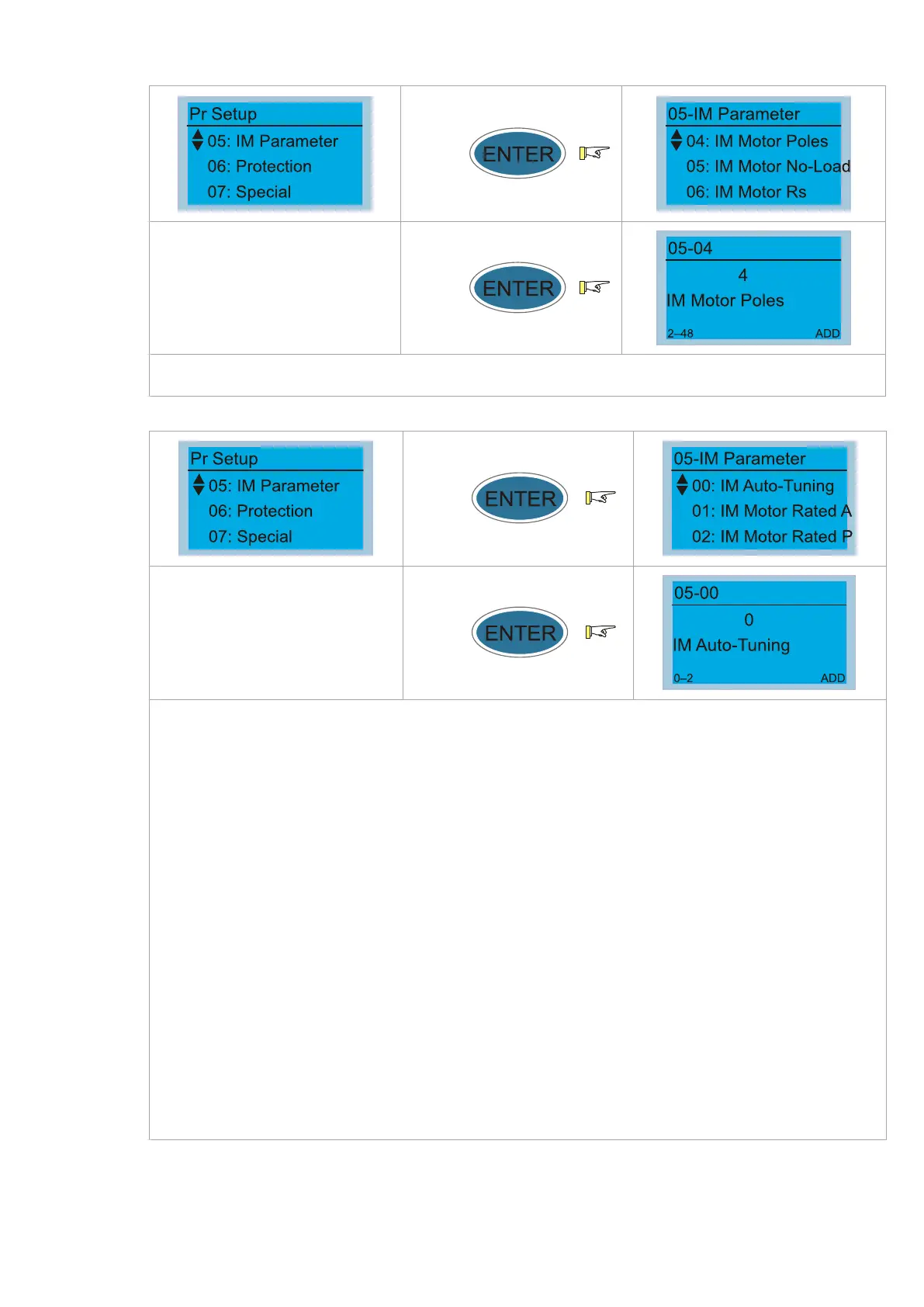 3. Enter the correct values for Pr.01-01, Pr.01-02, Pr.05-01, Pr.05-02, Pr.05-03 and Pr.05-