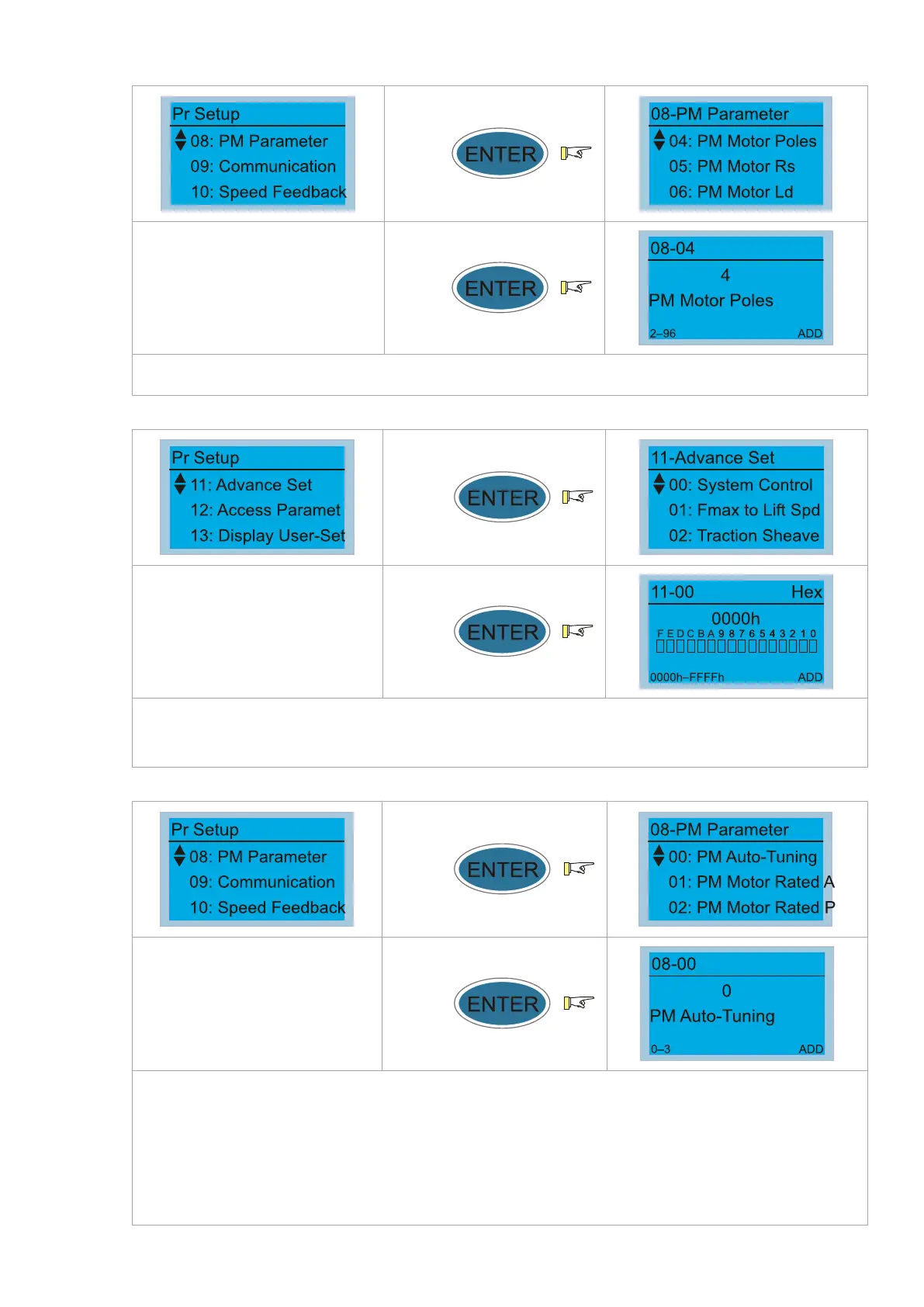15=2) to start auto-tuning. Or when the drive is in manual mode (inspection), run the upward