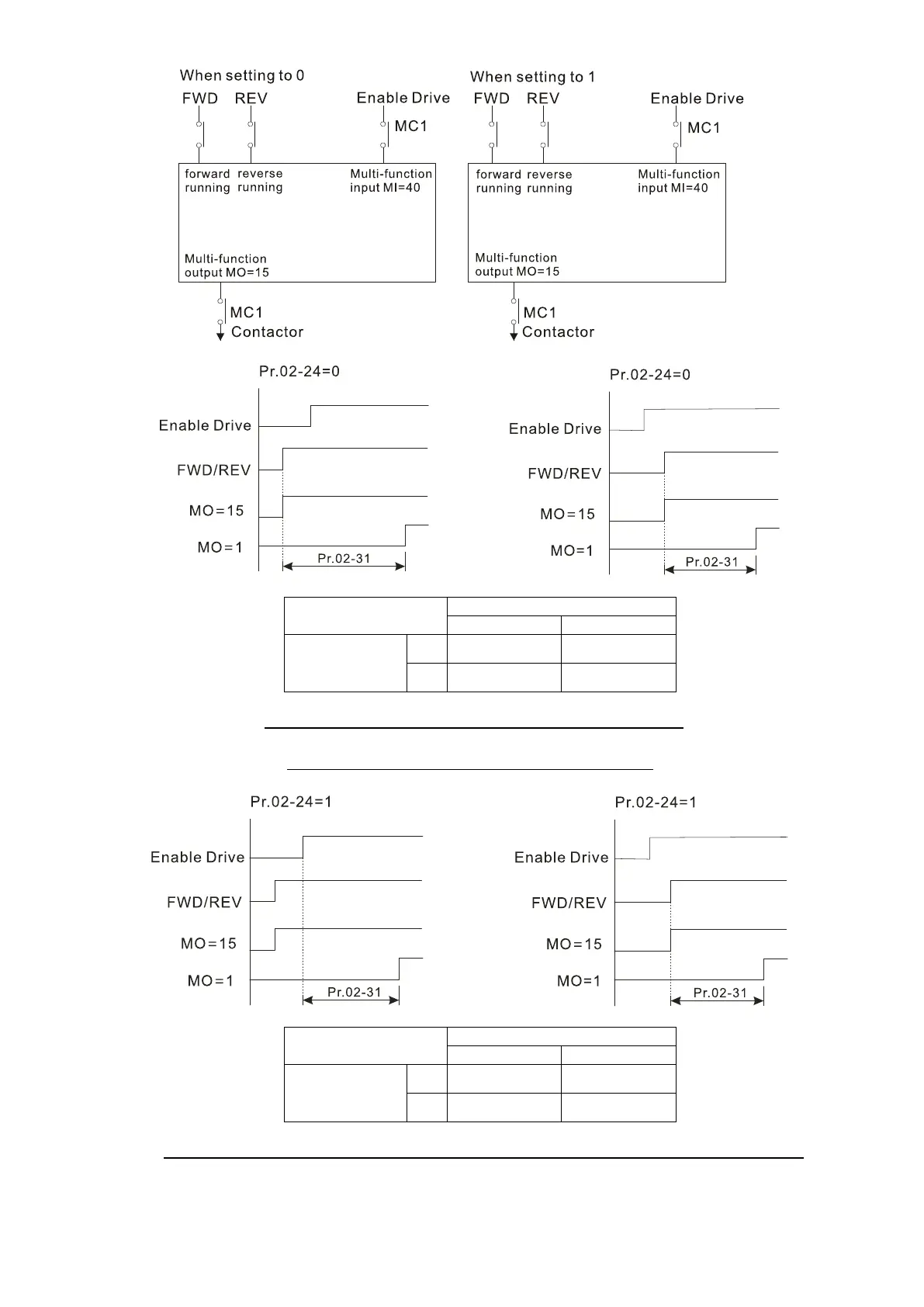 After both Enable Drive function signal and MO15 output, the drive starts to count Pr.02-31.