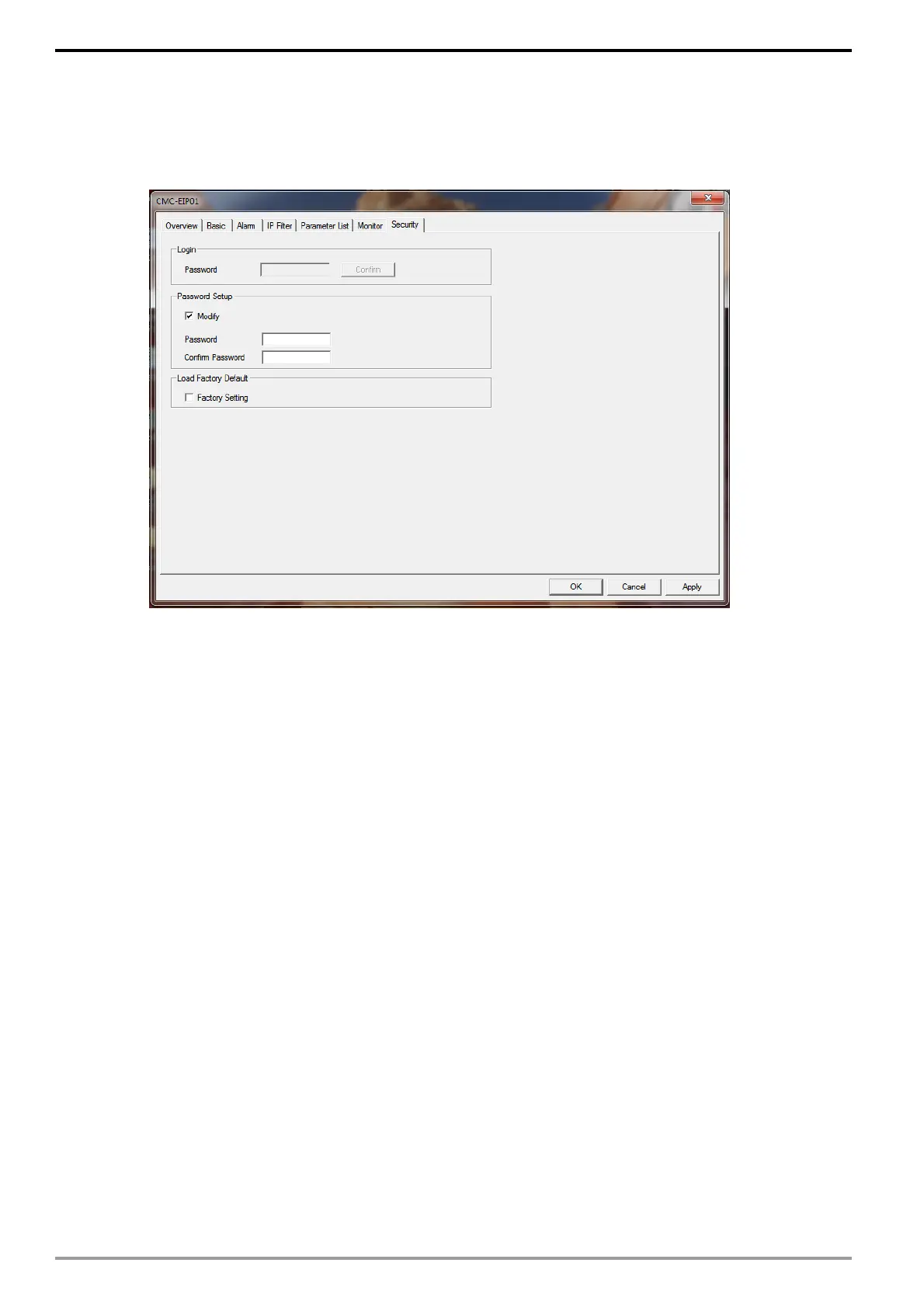 6. To clear the password, click "Modify" on the "Security settings" tab, leave the