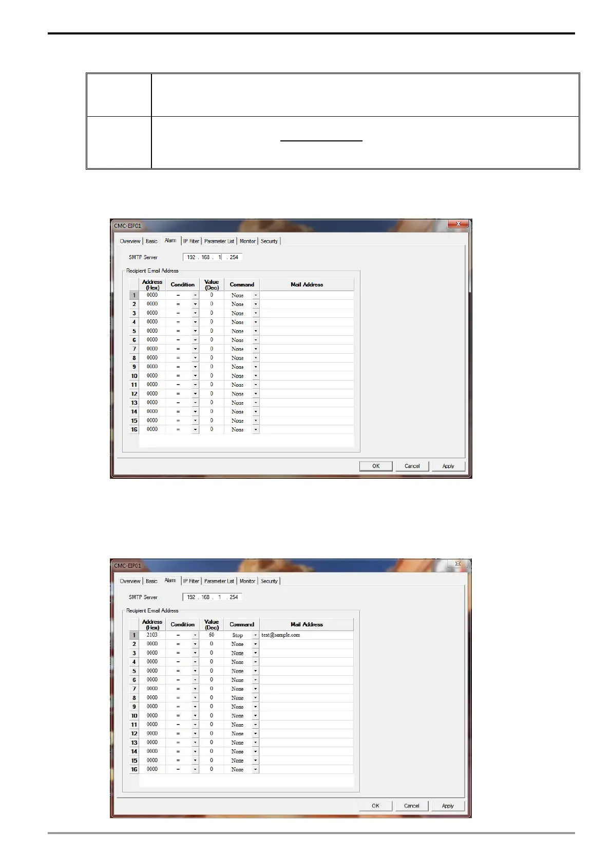 configured value, CMM-EIP01 will have the drive execute a command and send an e-mail