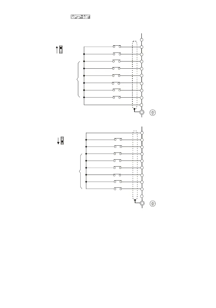 Delta VFD-VE - Figure 3 Wiring for SINK(NPN) Mode and SOURCE(PNP) Mode