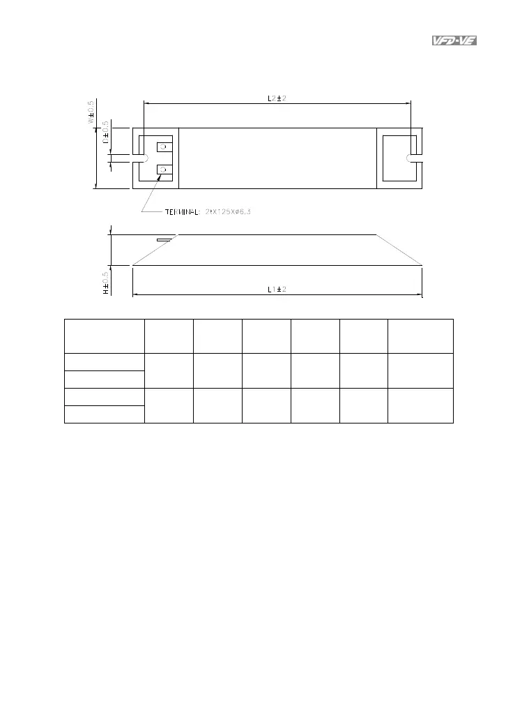 Model no. L1 L2 H D W