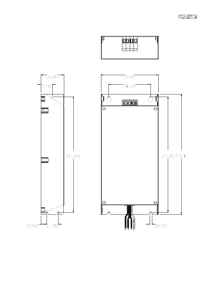 Delta VFD-VE - Dimensions - Order P;N: RF022 B21 BA; RF037 B43 BA