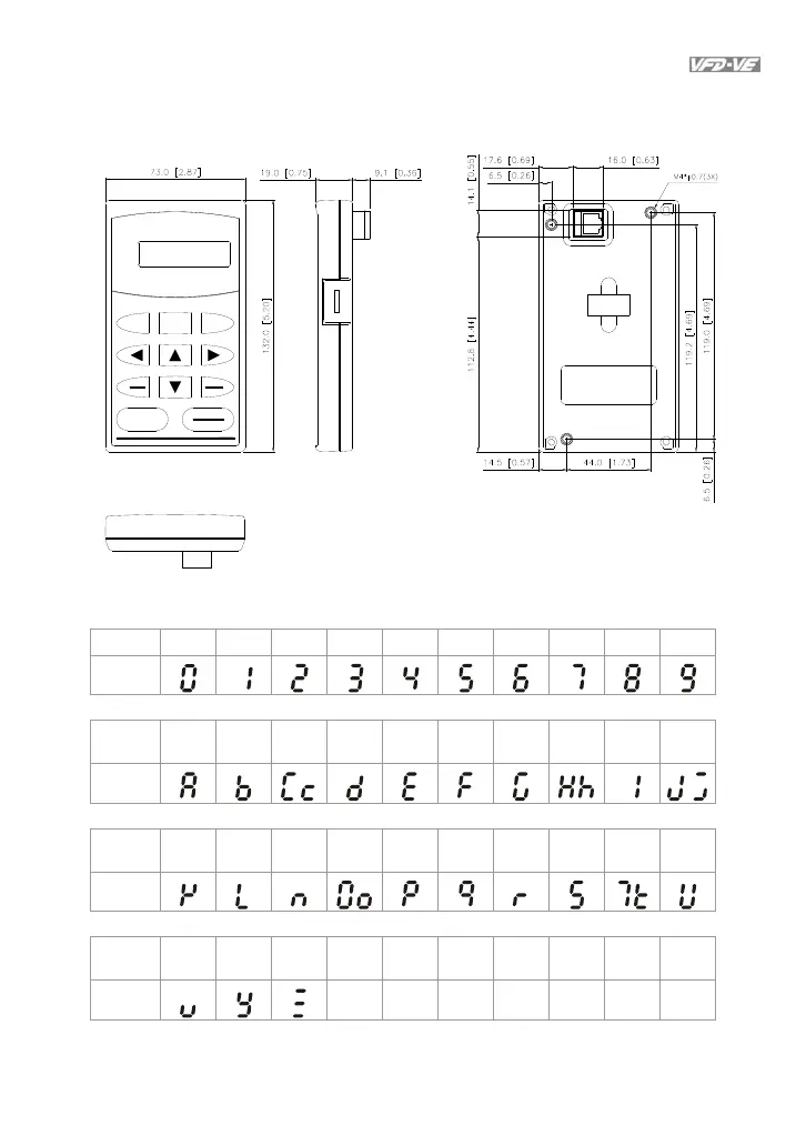 Delta VFD-VE - 3.1.3 Dimension of the Digital Keypad; 3.1.4 Reference Table for the LCD Display of the Digital Keypad