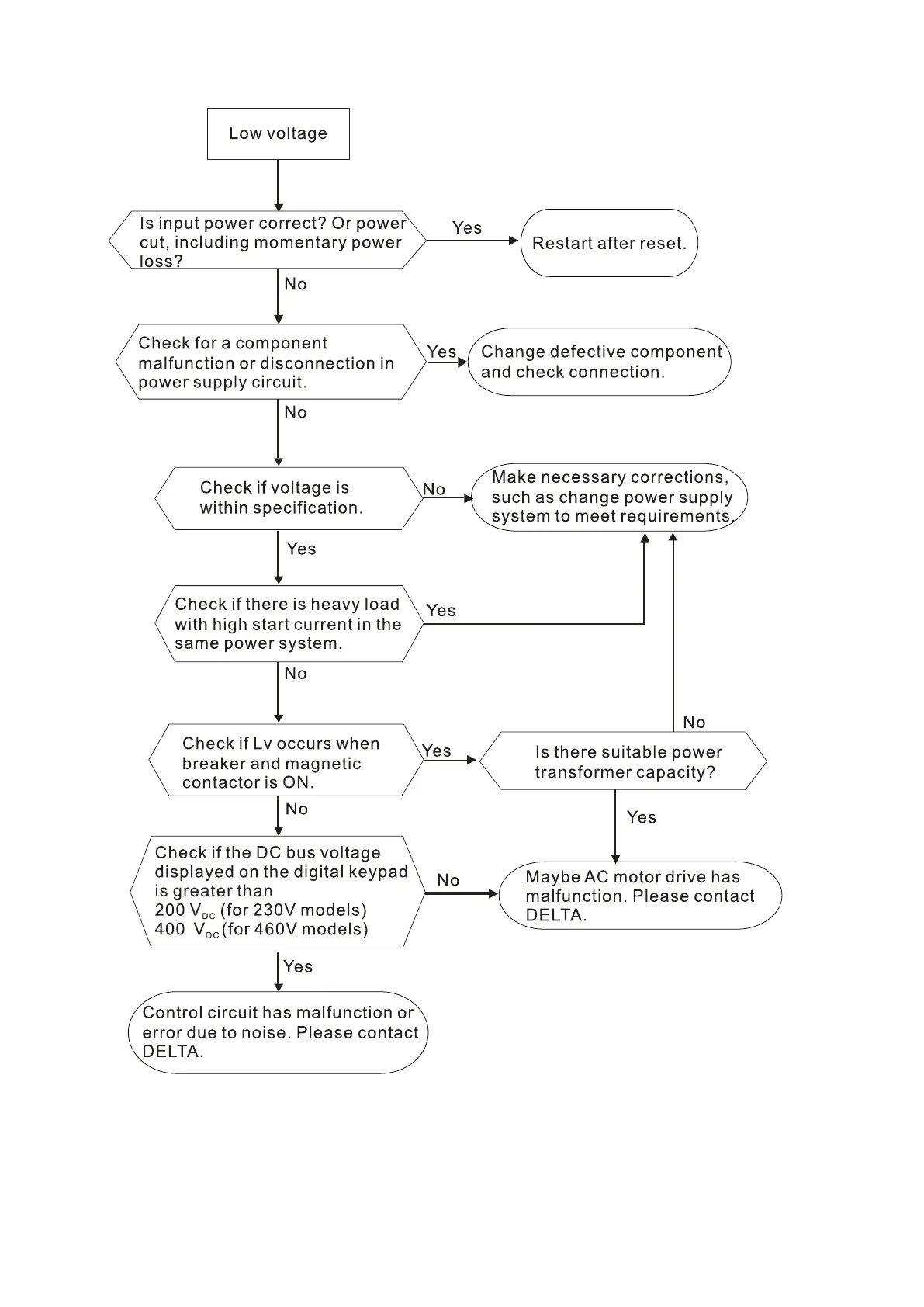 Delta VFD007EL43W - Low Voltage Faults (Lv)