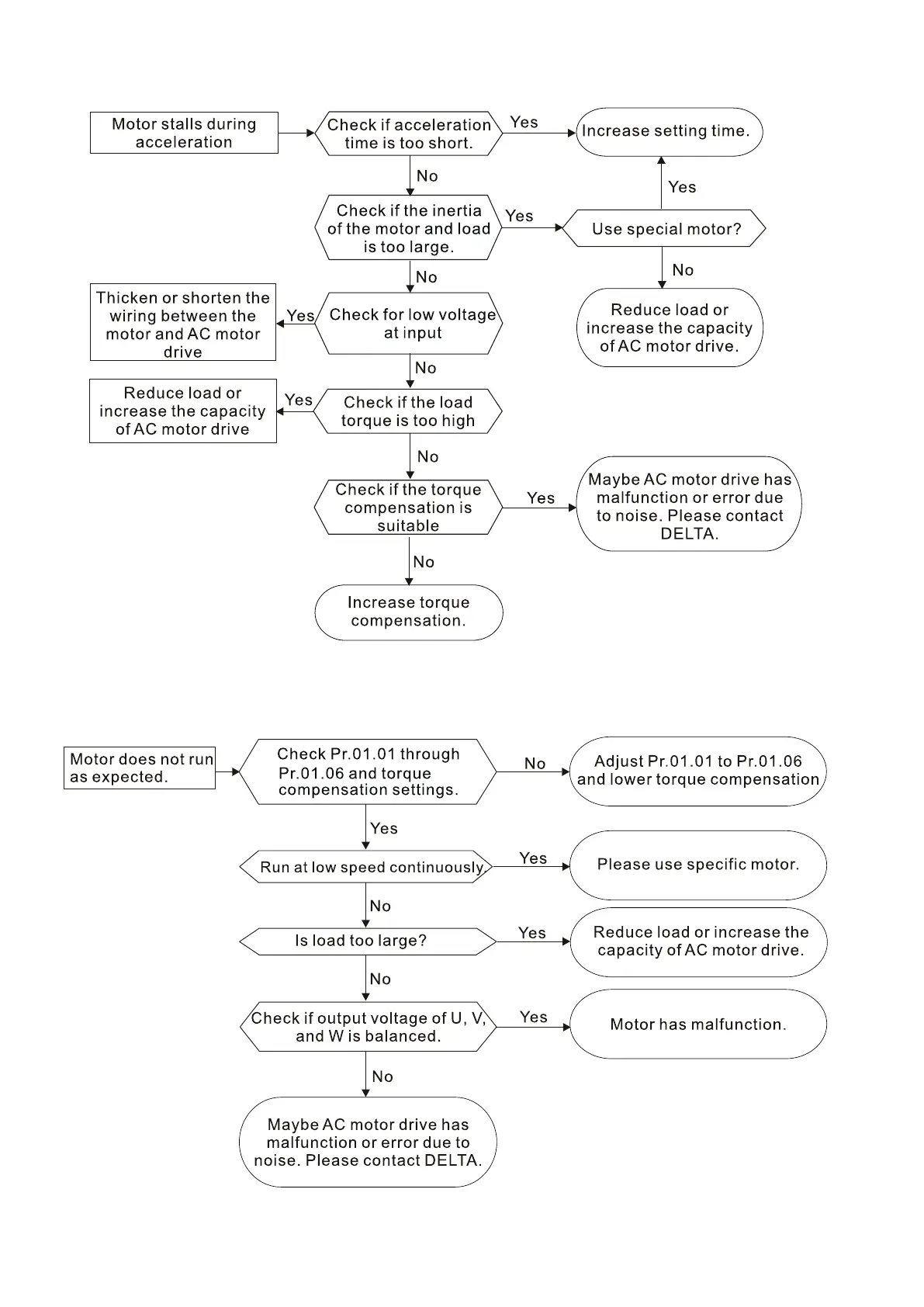 Delta VFD007EL43W - Motor Stalls During Acceleration; The Motor Does Not Run as Expected