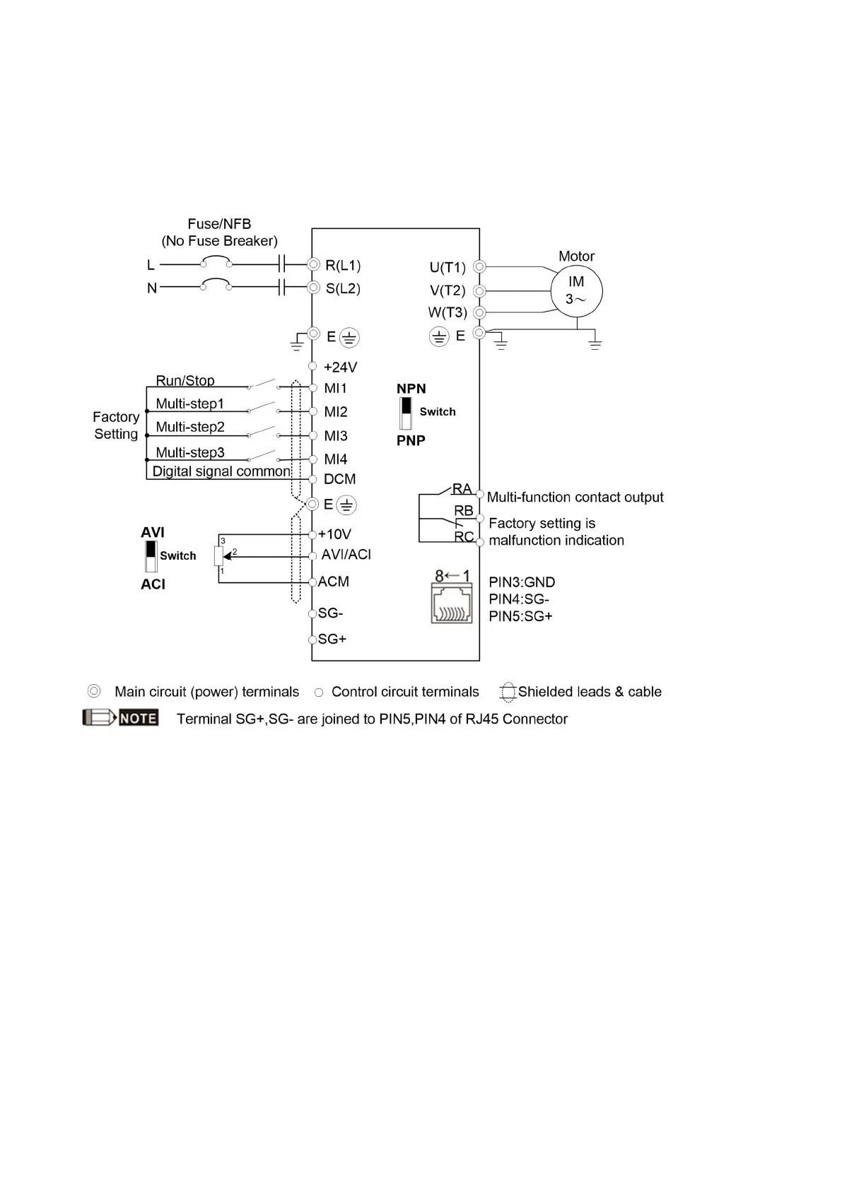 Delta VFD007EL43W - Wiring; 230 V One-Phase