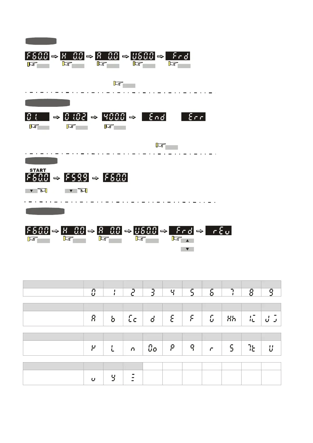 Delta VFD007EL43W - Keypad Operation Process; Reference Table for the Seven-Segment LED Display of Digital Keypad