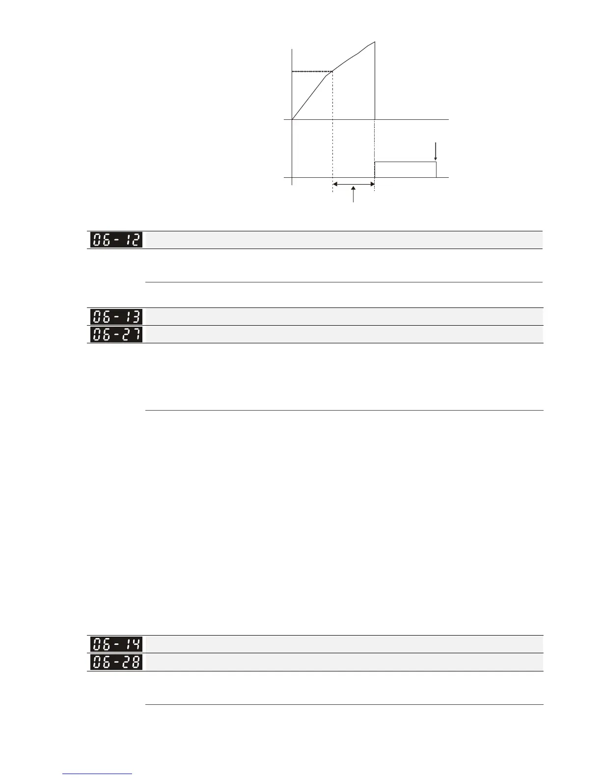The parameter is set by the 150% of motor rated current and the setting of Pr.06-14 and Pr.06-28