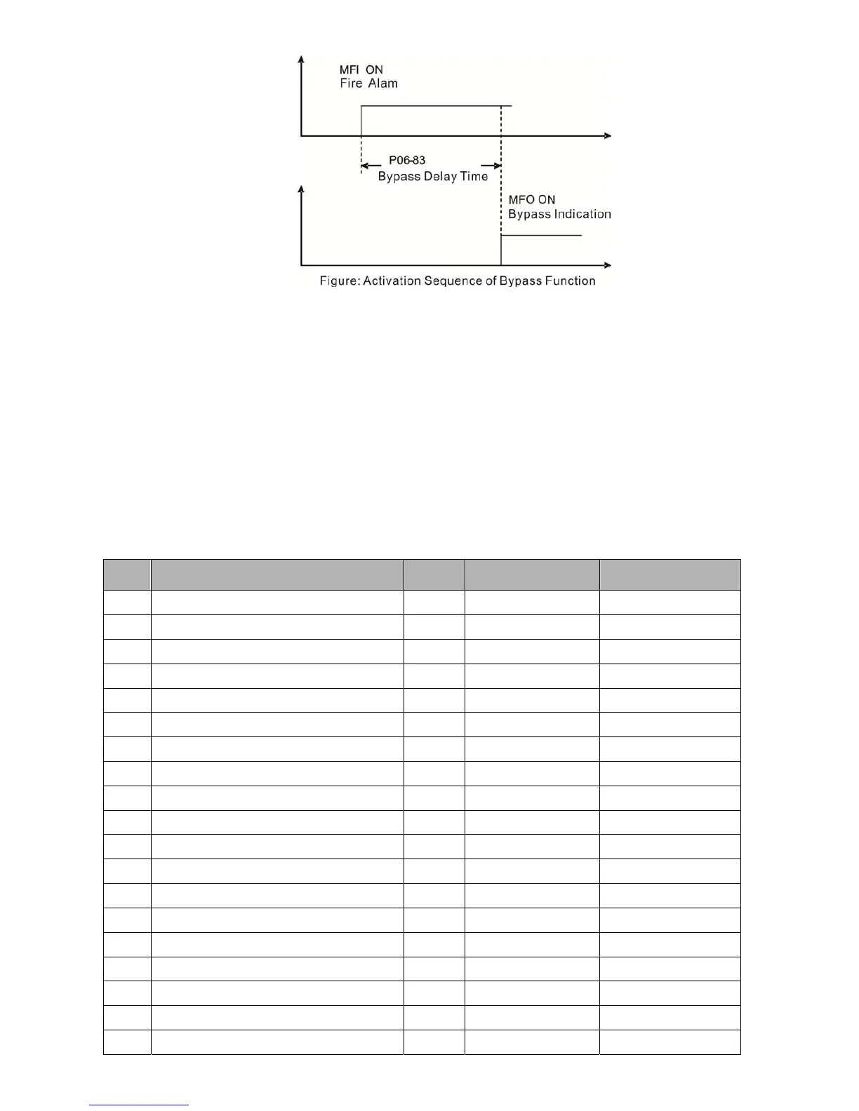 according to the time setting of Pr.06-83, then the bypass function will be enabled. MFO bypass