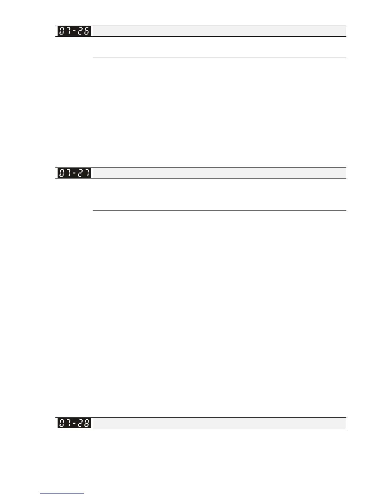 When Pr.07-26 is set to large, it may cause motor overflux and result in too large output current,
