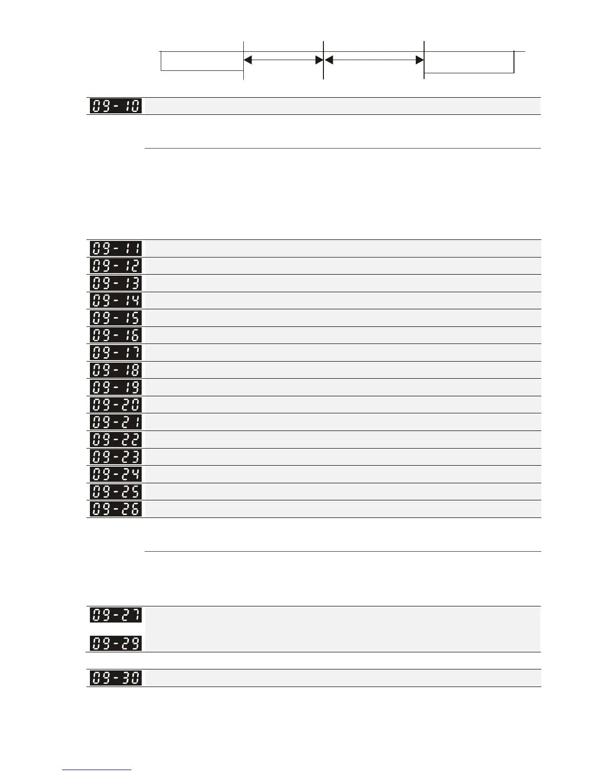 Pr.09-26). Through communication code 03H, user can use them (Pr.09-11 to Pr.09-26) to save