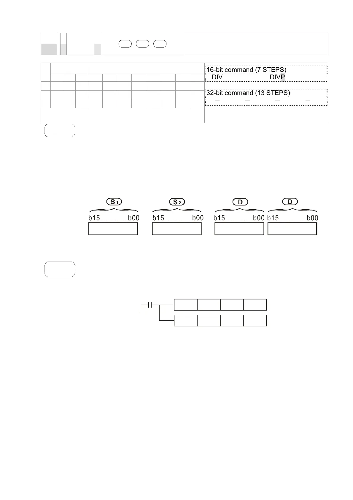 When X0 = On, D0 will be divided by D10; the quotient will be stored in D20 and