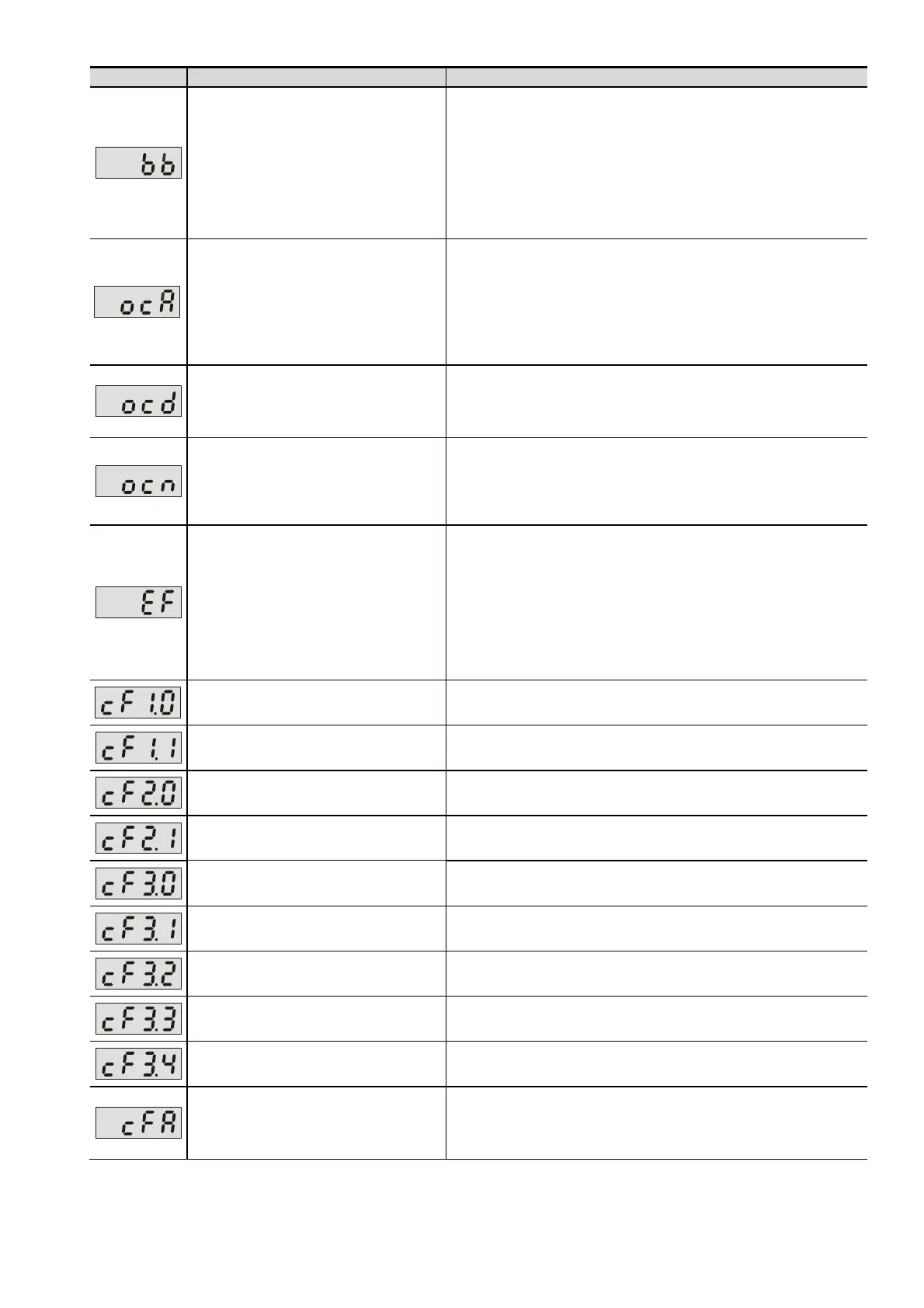 Fault Name Fault Descriptions Corrective Actions