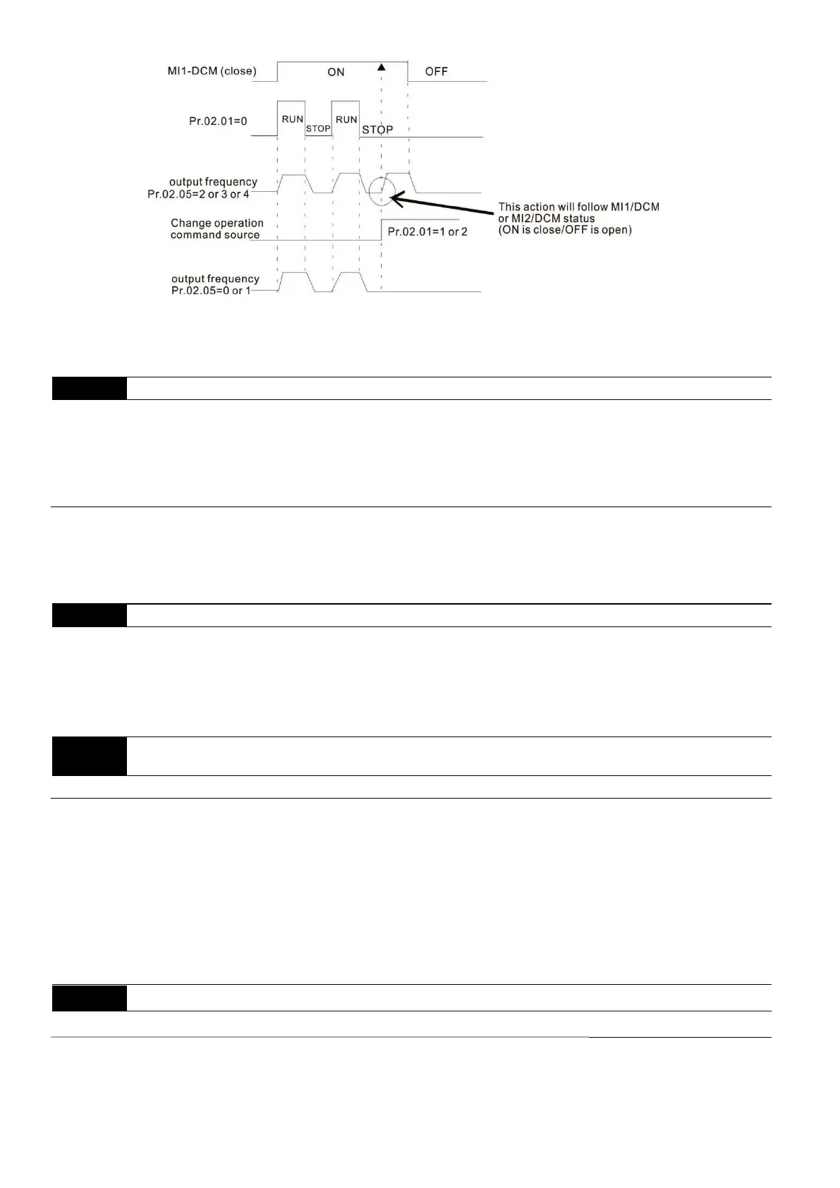 When you set Pr.02.05 to 1 or 3, it does not guarantee that the motor will never run under this condition. It is