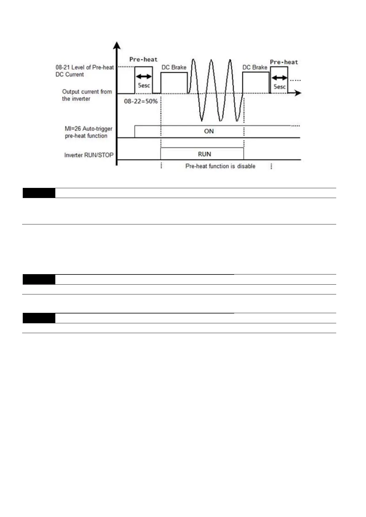The diagram below shows the sequential relationship between the preheating function and enabled DC brake.