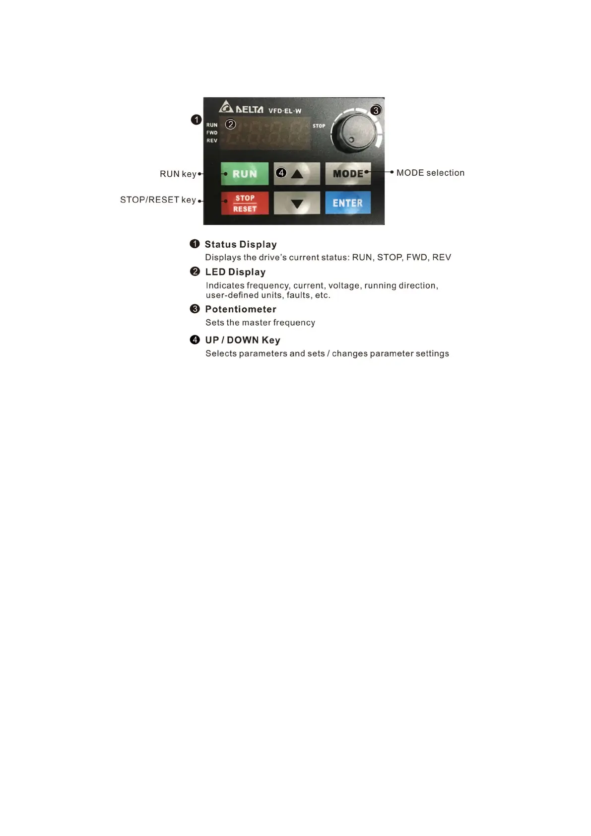 VFD-EL-W series operates the running and displays the functions by the digital keypad.