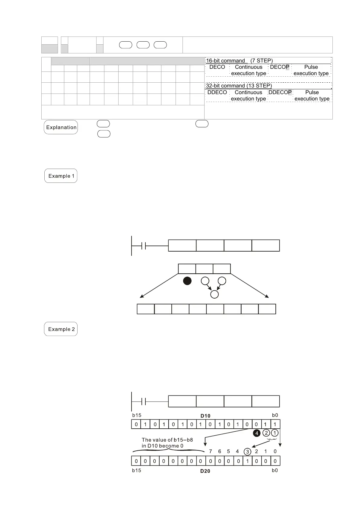 The lower 3 digits of D10 are decoded and saved in the lower 8 digits of D20, the