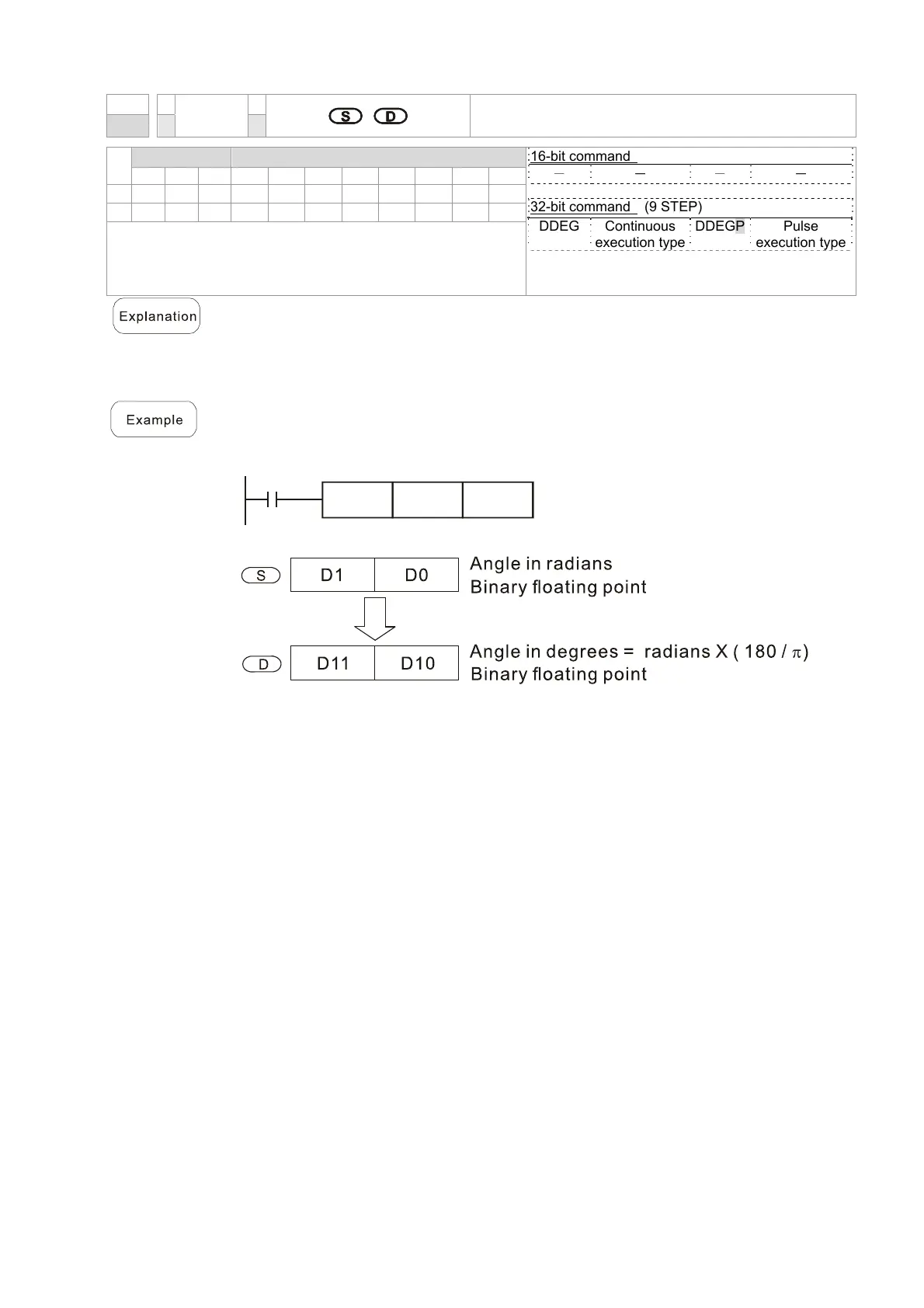 When X0=On, angle of the designated binary floating point number (D1, D0) in
