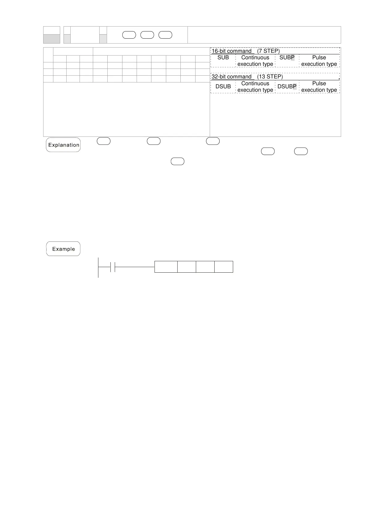 16-bit BIN subtraction: When X0=On, the content of D10 is subtracted from the