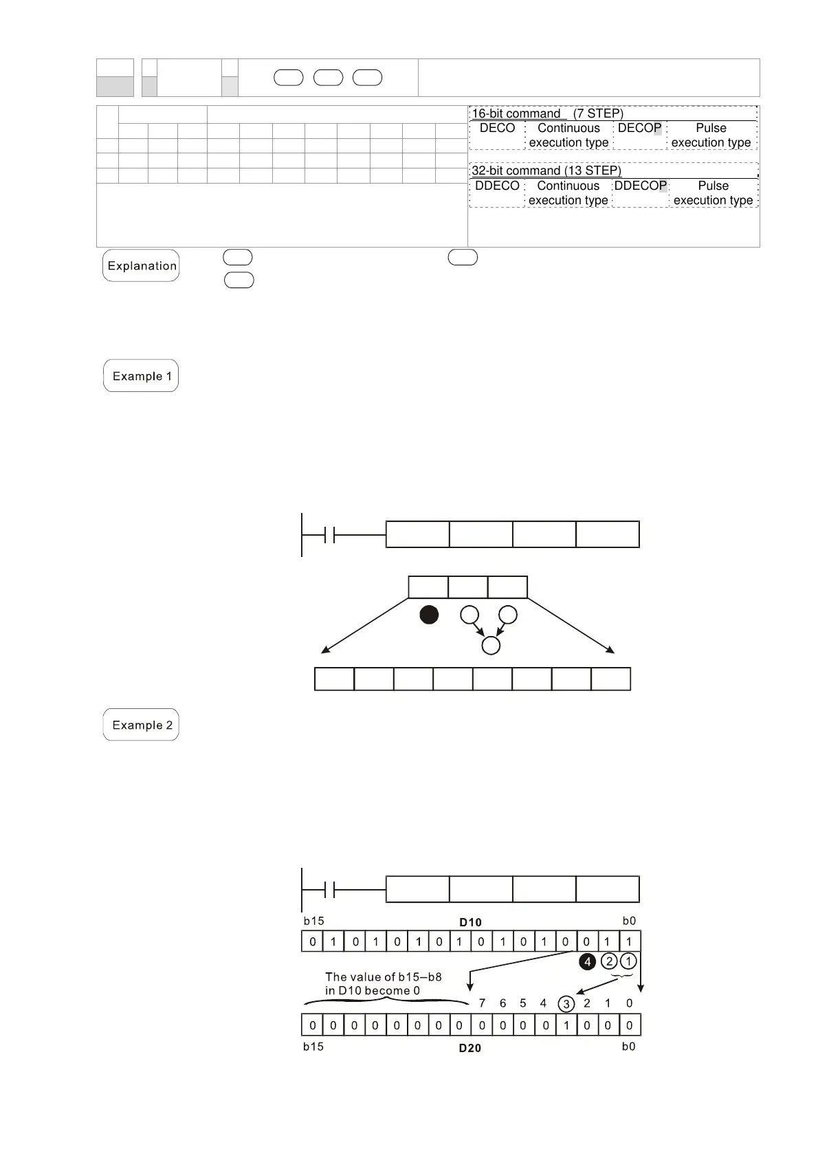 The lower 3 digits of D10 are decoded and saved in the lower 8 digits of D20, the