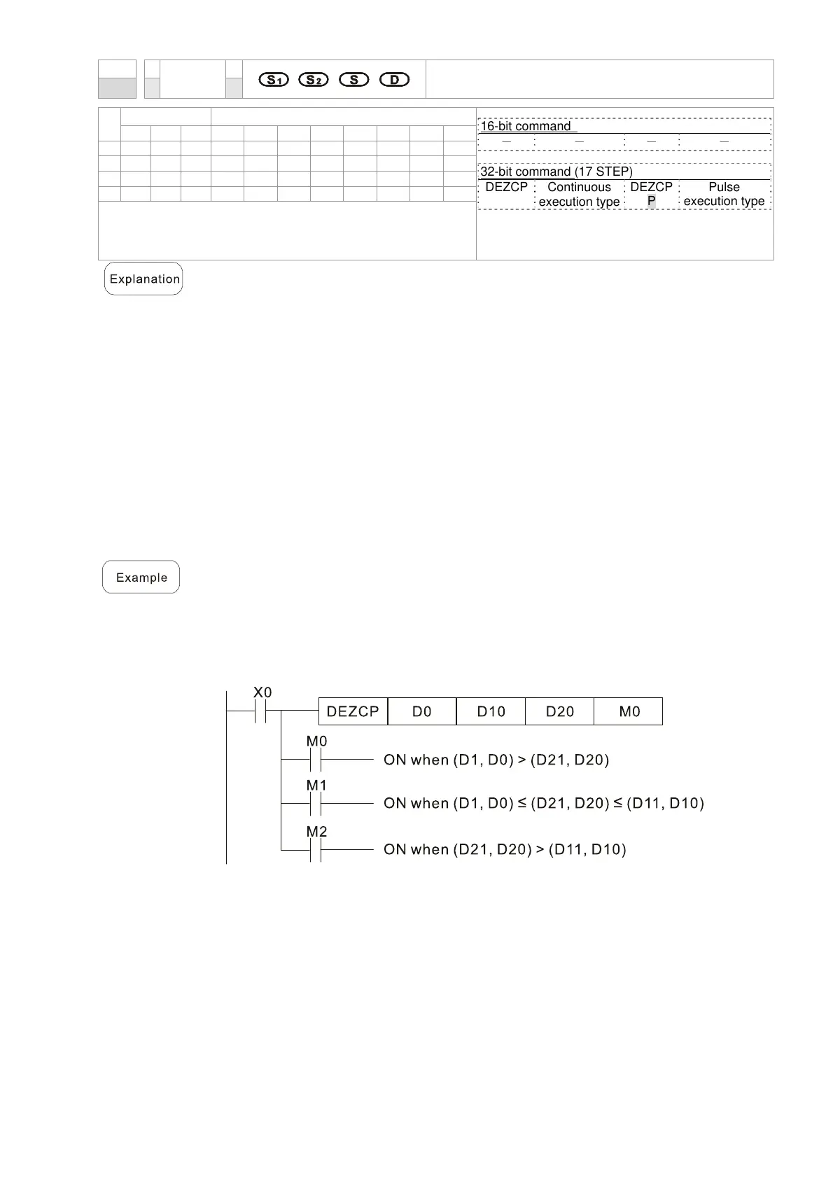 When X0=On, the DEZCP command will be executed, and one of M0–M2 will be