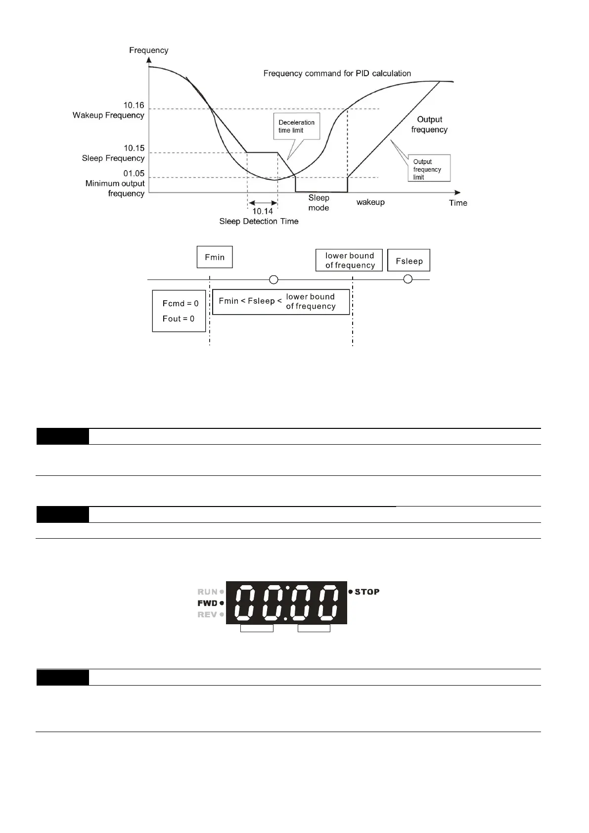 If Pr.01.08 ≤ Pr.01.05, the lower limit of the AC motor drive output frequency H is limited by Pr.01.05.