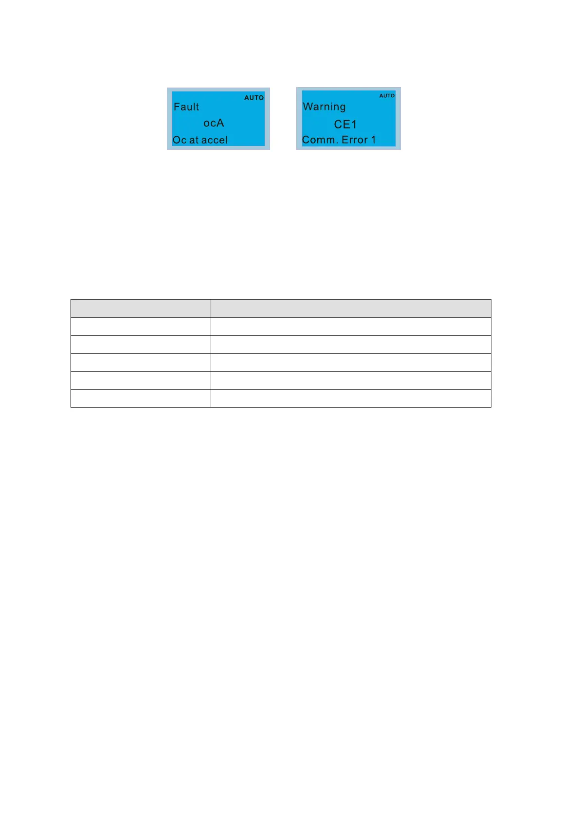 3. When the fault or warning message appears, the LED backlight blinks until you clear the fault or warning.