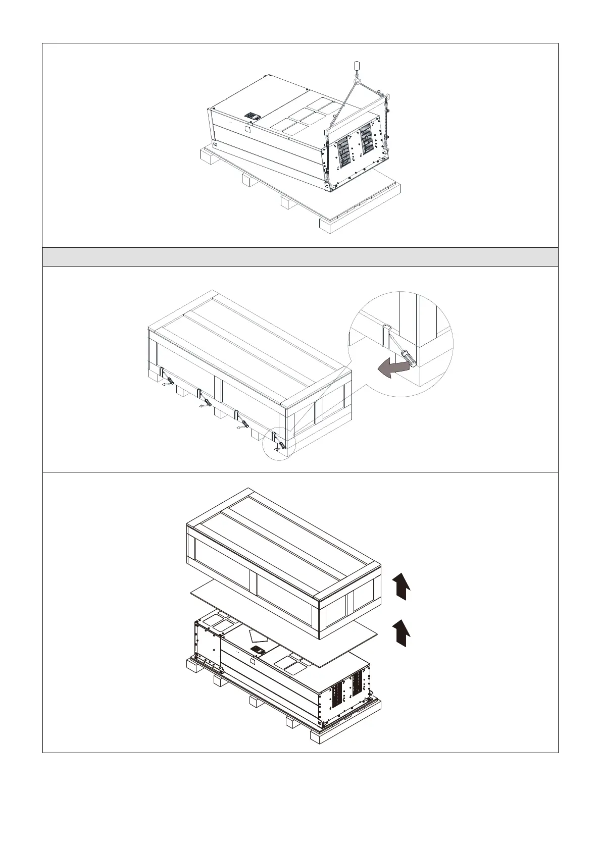 Remove the eight buckles fixed on the crate with a flat-head screwdriver, see the figure below.